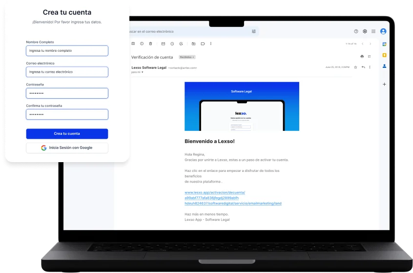 a) Accede a la plataforma Lexso y haz clic en “Crear Cuenta”.